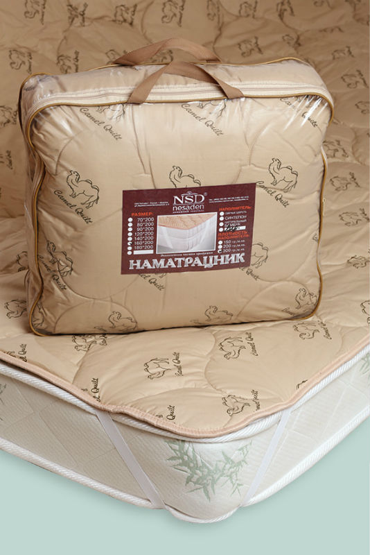 Тонкий наматрасник простеганный на микро волокне с добавлением натуральной верблюжьей шерсти размером 70х200. Купить наматрасник верблюжья шерсть такого размера можно как для узкой односпальной кровати, так и для детской кровати. Удобен в эксплуатации и помогает сохранять тепло во время сна. Чехол сшит из прочного тика. Для удобства по углам наматрасника вшиты резинки. Так наматрасник верблюд 70х200 прочно крепится к матрасу, не скользит.
