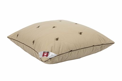 Любителям теплых и уютных постелей предлагаем купить подушку с наполнителем из верблюжьей шерсти и искусственного «лебяжьего пуха». Шерсть обладает отличными согревающими свойствами и способна быстро поглощать влагу, поэтому производимое верблюжьей шерстью целебное тепло называют сухим.